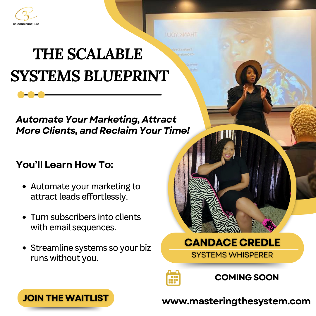 Candace Credle, MBA, is the Workflow Strategist entrepreneurs seek to manage the flow of their business more effectively and efficiently with systems, so they can show up in their greatness to do what they love and spend less time on the back end of their business, projects, and events.
